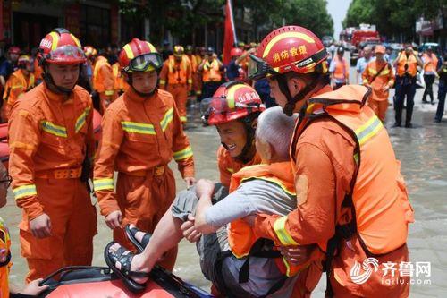 一线救援:消防员、武警、民兵等救援队伍迅速出动,他们驾驶着冲锋舟,穿梭在洪水肆虐的街道上,救出被困群众。有的救援人员甚至徒手将老人和孩子从洪水中救出,他们的英勇行为让人感动不已。